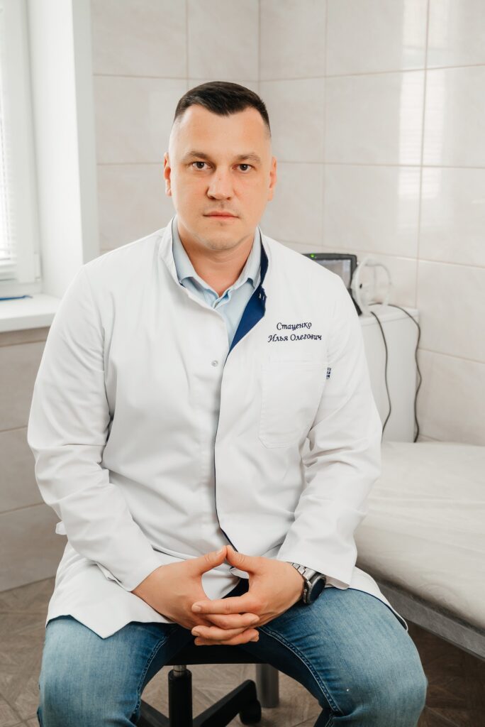 «Многие вопросы мы можем решить без хирургии, — говорит главный врач Илья Стаценко. — К примеру, из 10 пациентов, которые обращаются с болью в плечевом суставе, только в одном случае требуются хирургические методы лечения. Мы стараемся решить вопросы без операции, потому что хирургия применяется от безысходности, когда больше ничего не помогает».