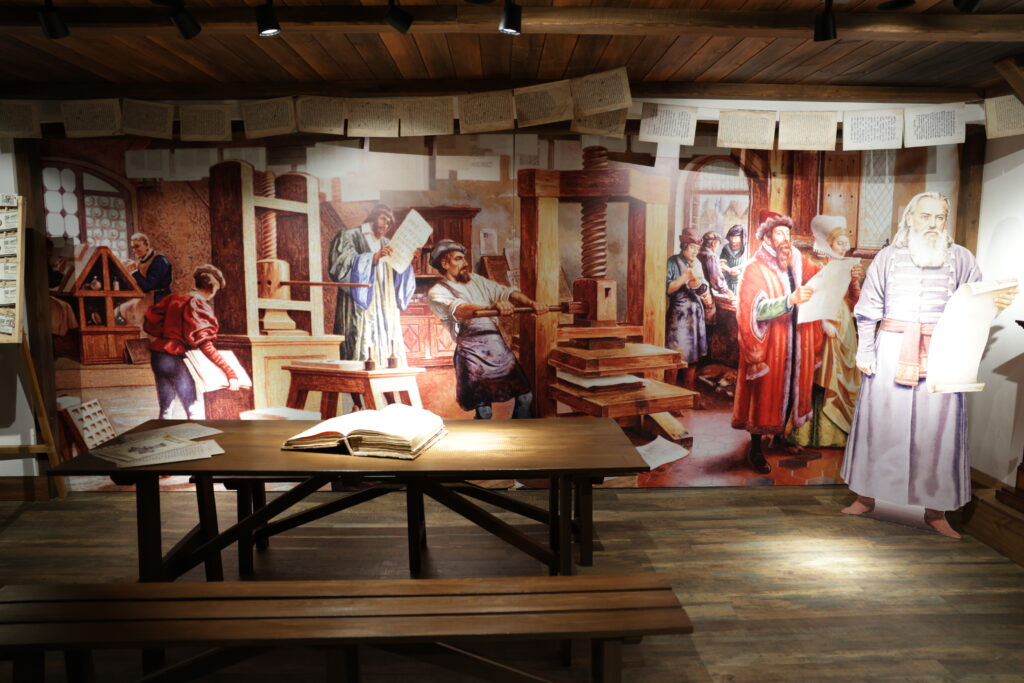 Гости комнаты узнают о влиянии изобретения книгопечатания на развитие русской культуры, науки и образования, а также смогут самостоятельно набрать текст на старинном станке.