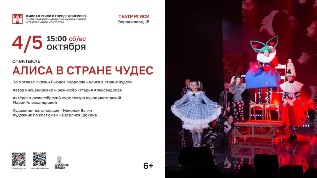 Спектакль «Алиса в стране чудес» — это волшебное путешествие в мир воображения и бесконечных превращений, благодаря которым Алиса взрослеет, понимает цену времени, учится вежливости (6+).