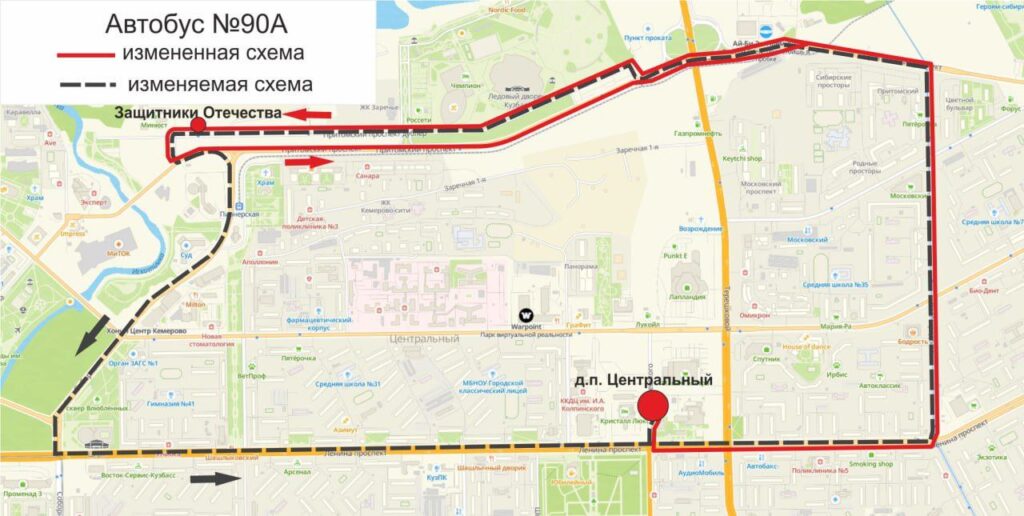 Так, автобус №90а теперь будет курсировать до остановки «Защитники Отечества» и обратно. В прямом направлении он поедет по пр. Ленина, ул. Волгоградской и дублёру Притомского проспекта. В обратном – через Притомский, Волгоградскую и Ленина.