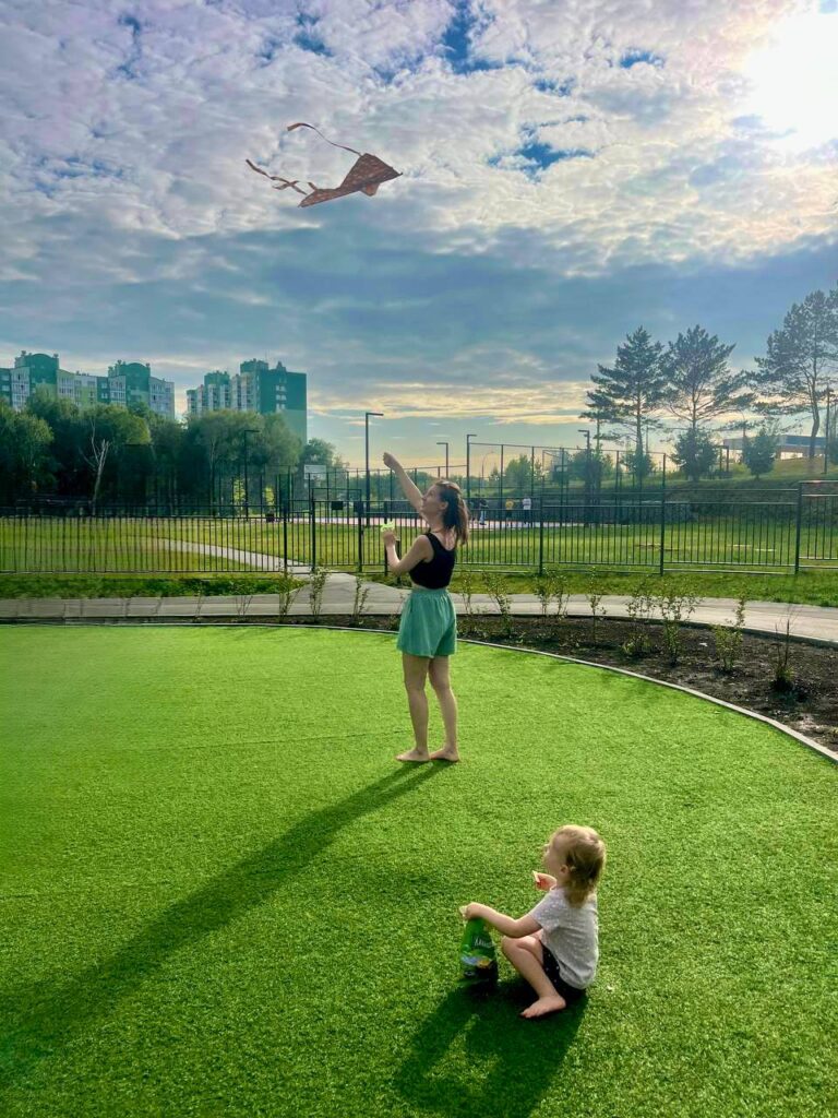 У нас много детских площадок – есть, где малышам разгуляться. Закрытый двор от машин – супер-важно. Можно не беспокоиться о том, что ребенок выбежит под машину или уйдет с территории. Рядом парк, игровые площадки, ТЦ, магазины, пункты выдачи заказов, ателье, кафе и рестораны, тренажерный зал…Мы вообще практически не выходим из своего жилого комплекса. Не нужно тратить время и ехать куда-то, это время можно провести с большей пользой. А еще построили новую дорогу — до центра теперь ехать пять минут.