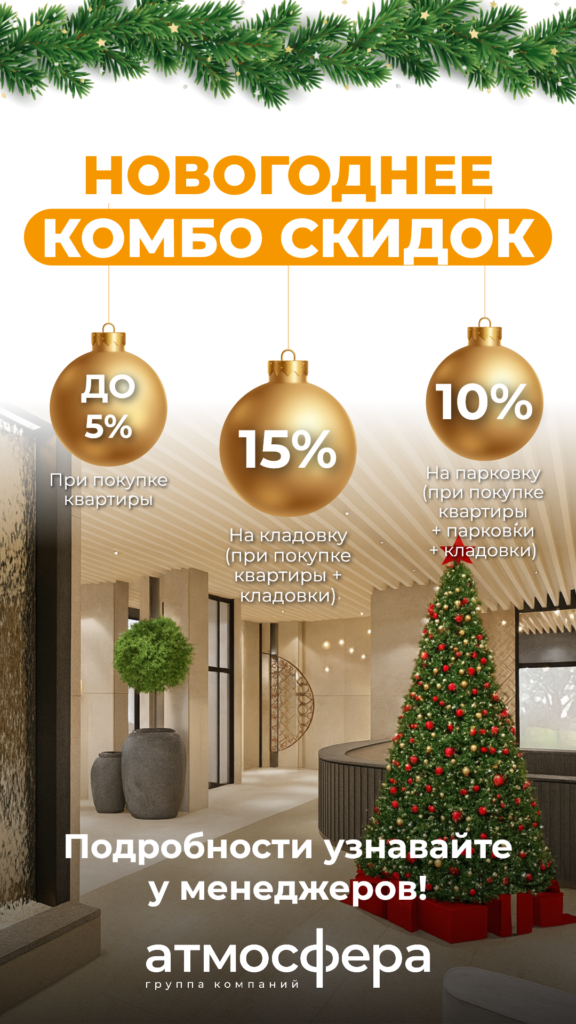 Акция распространяется на ограниченный ассортимент квартир. С подробностями можно ознакомиться в отделе продаж и на сайте группы компаний «Атмосфера».
