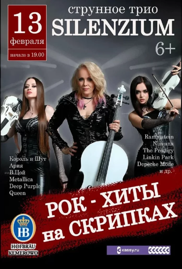 Струнное трио Silenzium сыграет на скрипках легендарные рок-хиты: от «Арии» и «Короля и Шута» до Rammstein и Linkin Park (6+).