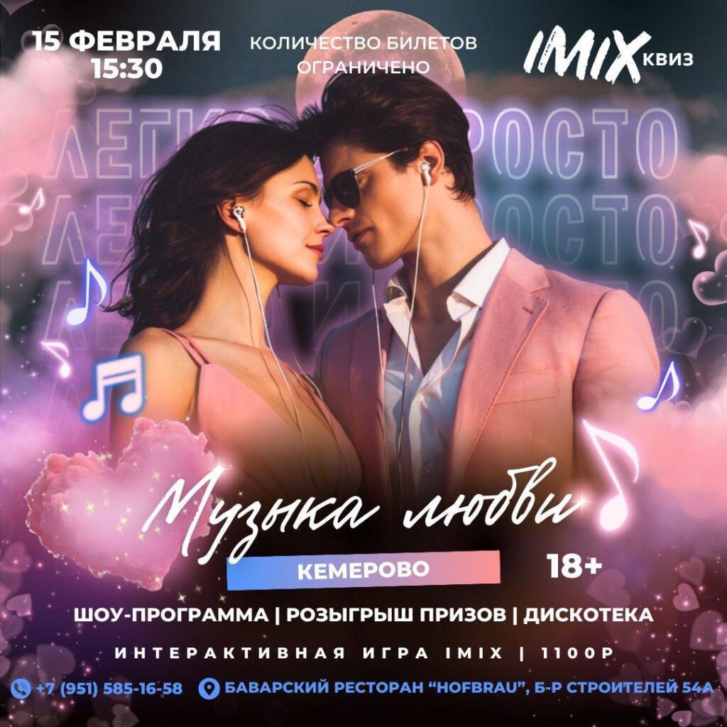 Гостям квиза «Музыка любви» предложат вспомнить узнаваемые песни, под которые мы влюблялись, скучали и мечтали (18+).