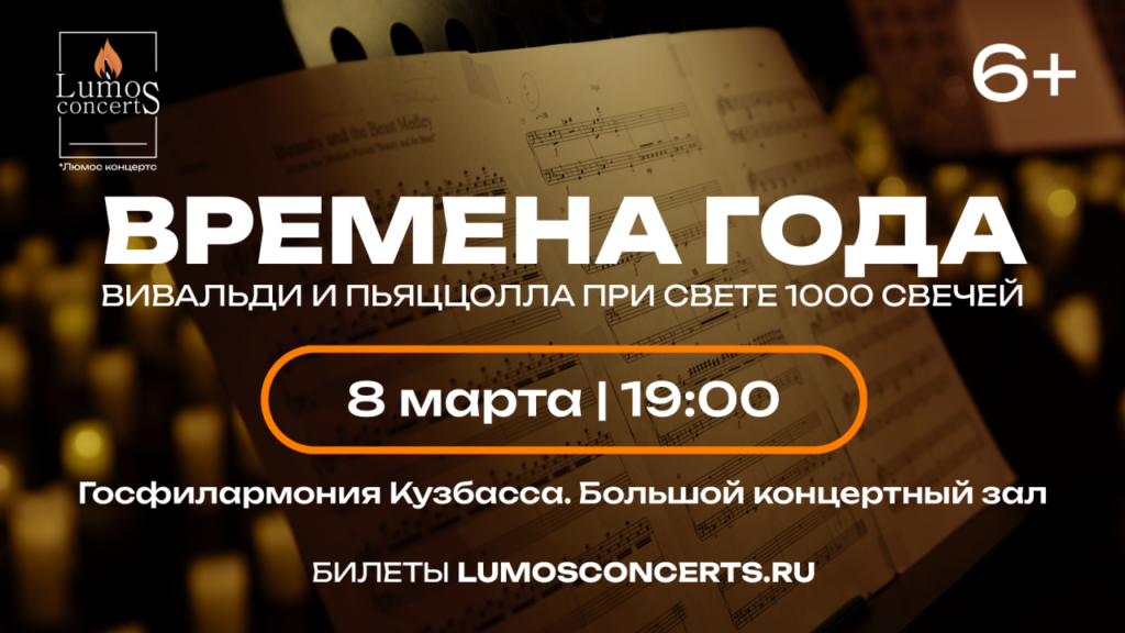 Концерт «Lumos Concerts. Вивальди, Пьяццолла: Времена года» — это возможность услышать музыку двух легендарных композиторов в современном звучании (6+). Особую атмосферу создадут 1000 горящих свечей.
