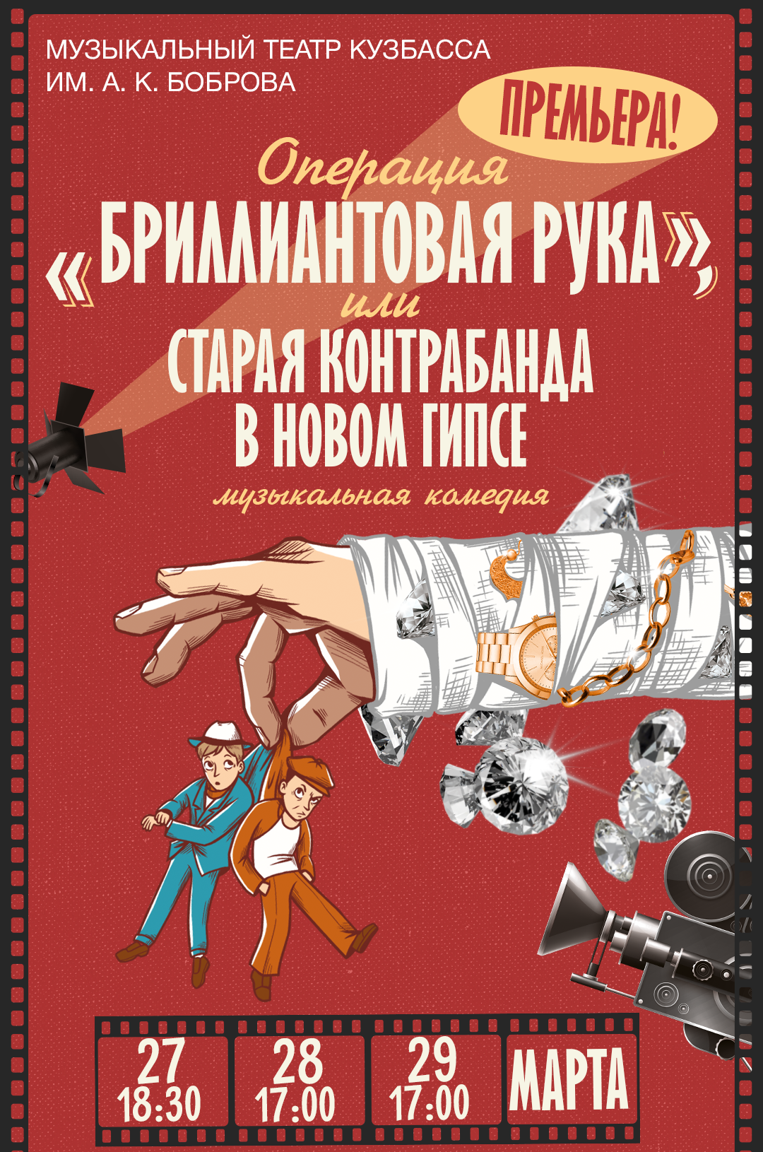 В Музыкальной театре Кузбасса состоится премьера комедии «Операция «Бриллиантовая рука», или старая контрабанда в новом гипсе» (12+). Это спектакль, где знакомые цитаты обретают новый смысл, а музыка задает ритм погоне за сокровищами.