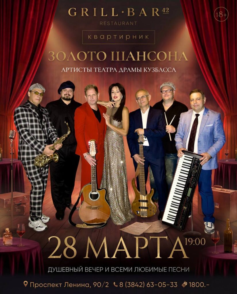 Квартирник «Золото шансона» погрузит зрителей в атмосферу душевного вечера, где популярные хиты исполнят артисты Театра драмы Кузбасса (18+).