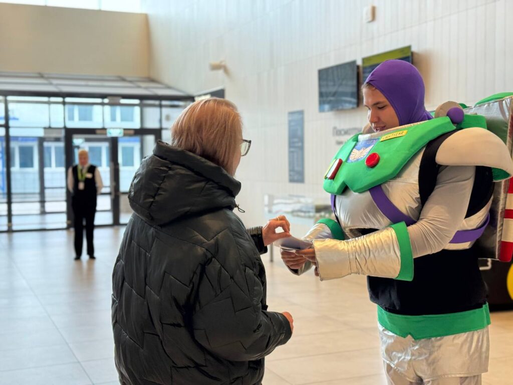 Волонтер в костюме Базза Лайтера из мультфильма «История игрушек» был среди приглашенных артистов. Как сообщили в пресс-службе новокузнецкого аэропорта, с ним фотографировались, улыбались и даже загадывали желания перед полётом.