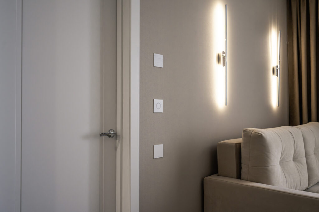 Современный интерьер часто страдает от «визуального шума». На стенах висят пластиковые пульты кондиционеров, термостаты теплых полов, блоки домофона и россыпи выключателей.