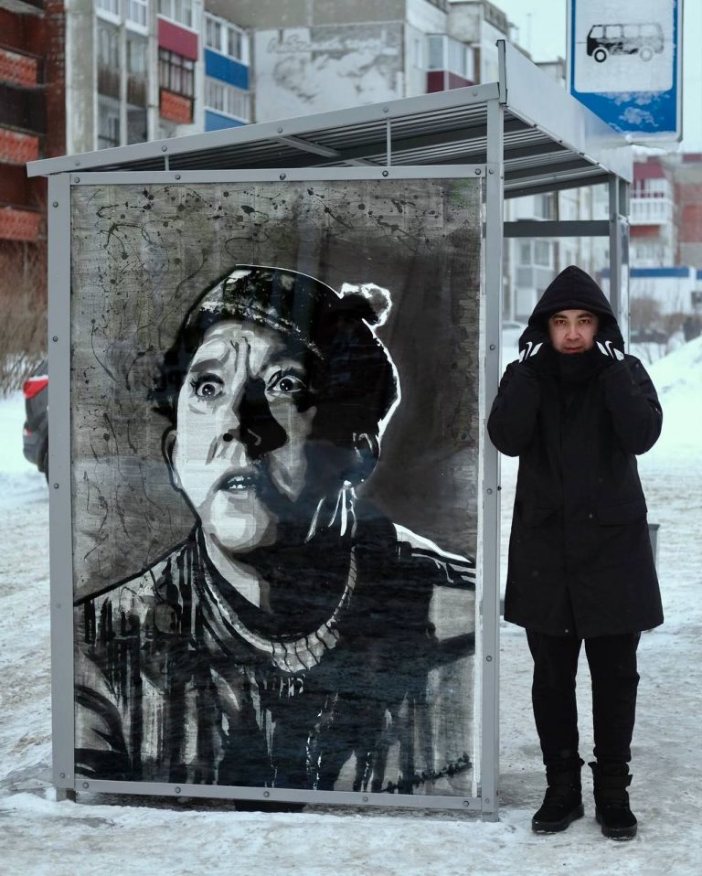 Новая работа художника-энтузиаста Дамира Хуссамова появилась на остановке «10 микрорайон» в Прокопьевске. Известный актер предстал в образе Балбеса из «Кавказской пленницы»…