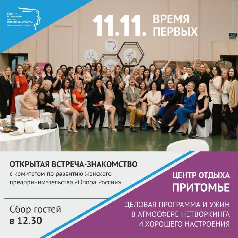 11 ноября в центре отдыха «Притомье» состоится традиционная открытая встреча с комитетом по развитию женского предпринимательства «Опора России». Начало в..