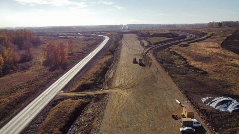 Речь идет о технологической дороге. Ее проложили вдоль основной трассы по всей протяженности для обеспечения круглогодичного подъезда спецтехники, доставки материалов..